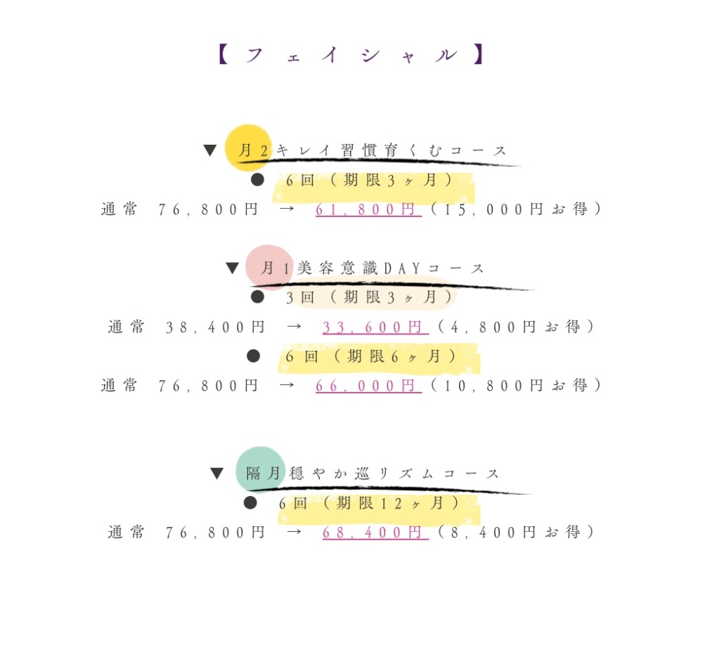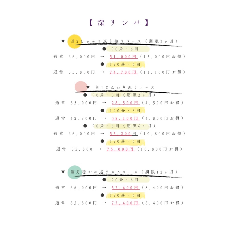 •月2しっかり巡り整う6回:通常 66,000円 → 51,000円(15,000円お得)