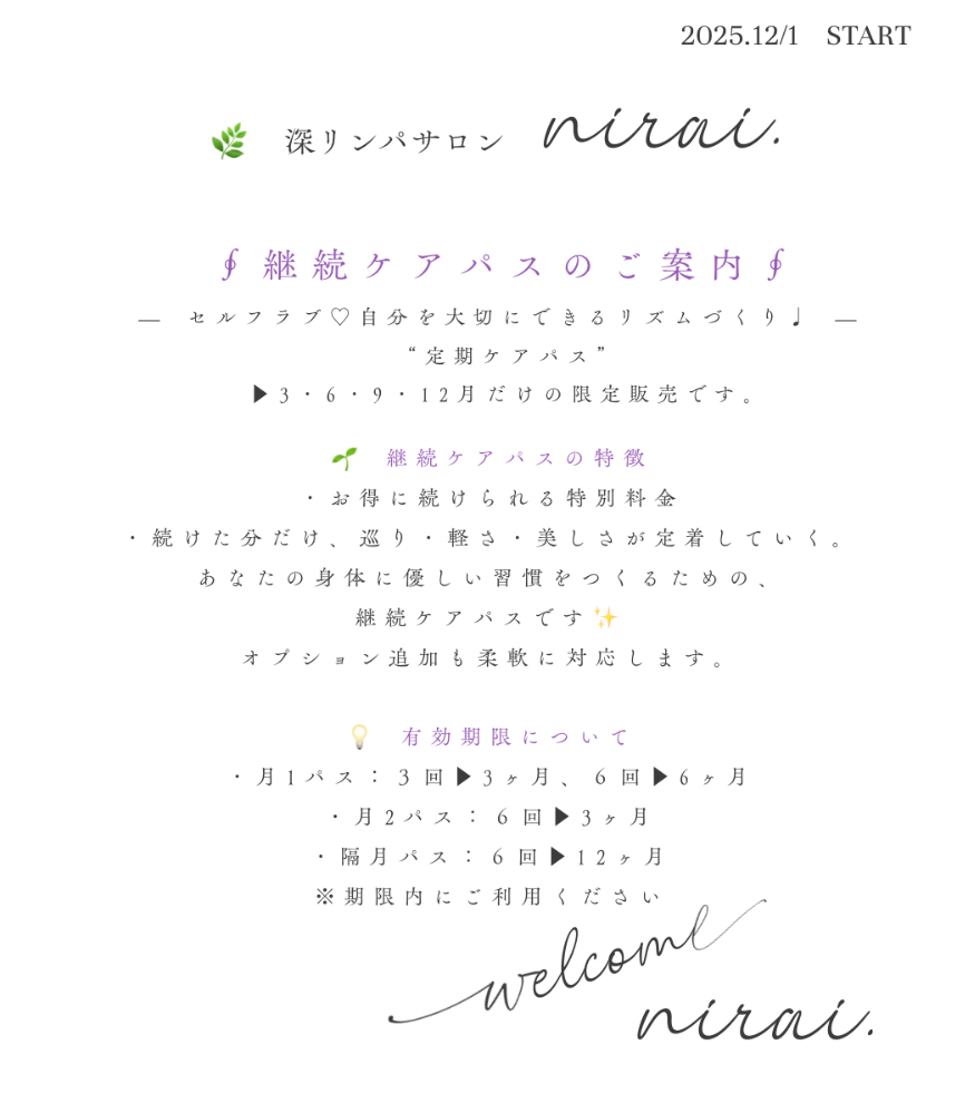 また、今まで通り再来割引は残っておりますので、都度払いの方が通いやすい方もご安心くださいませ☺️☘️